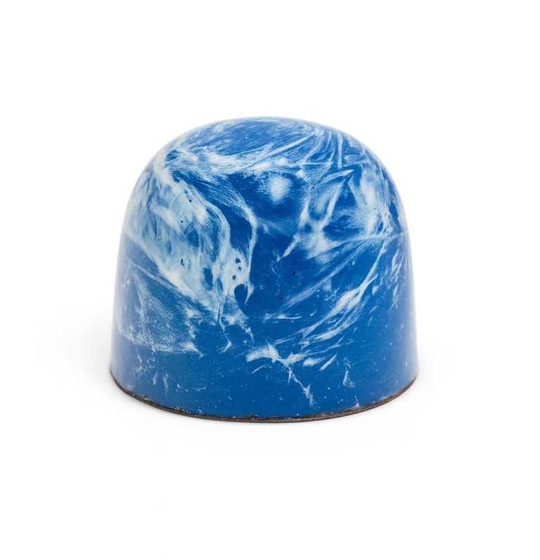 Sous sa coque marbrée bleu et blanc, une surprise éclatante.